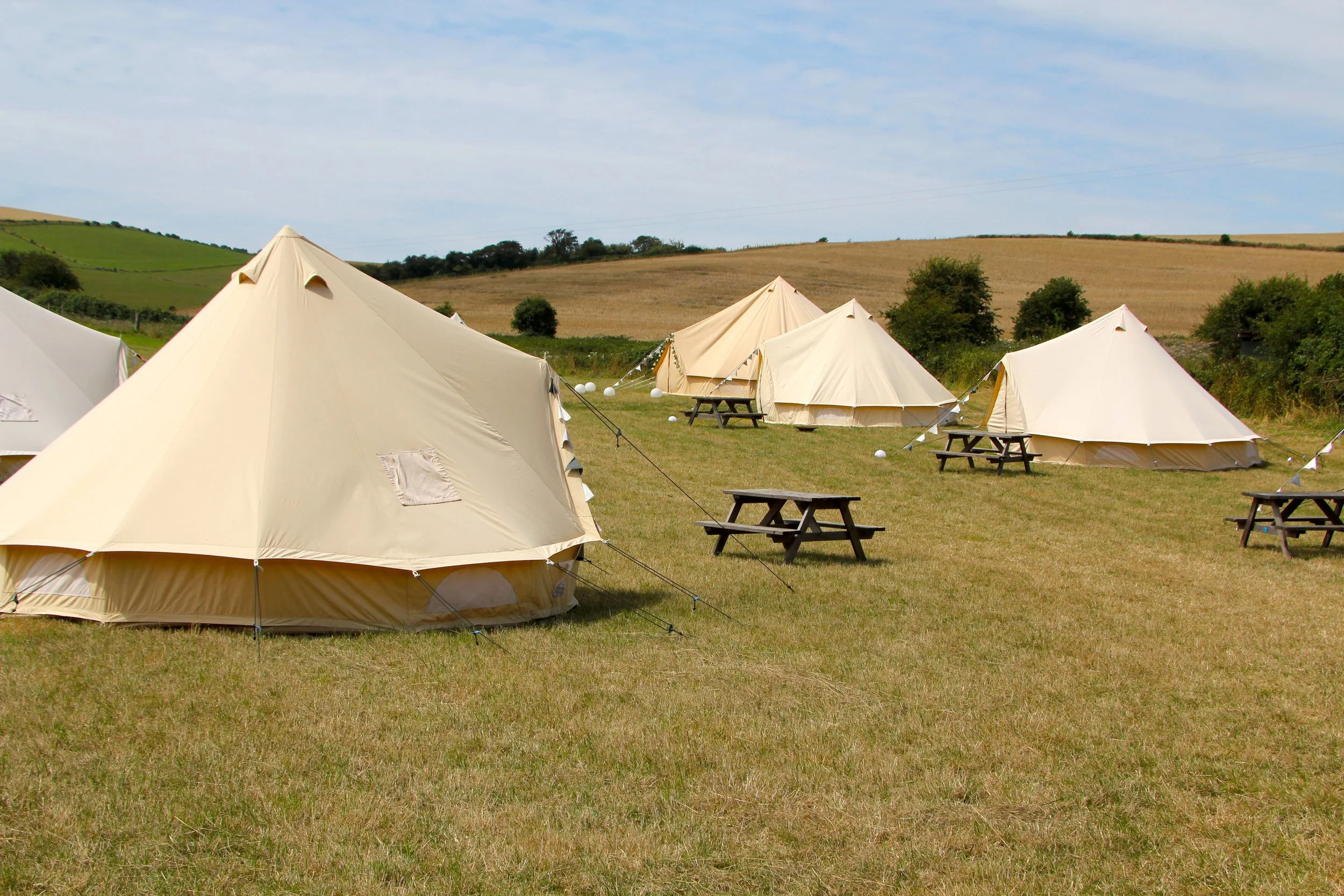 Our bell tents are in a secluded spot nestled within our valley, at the foot of the South Downs.